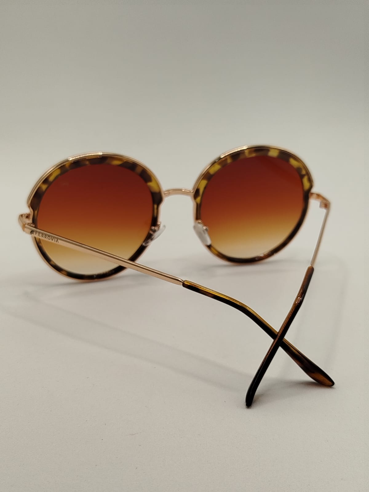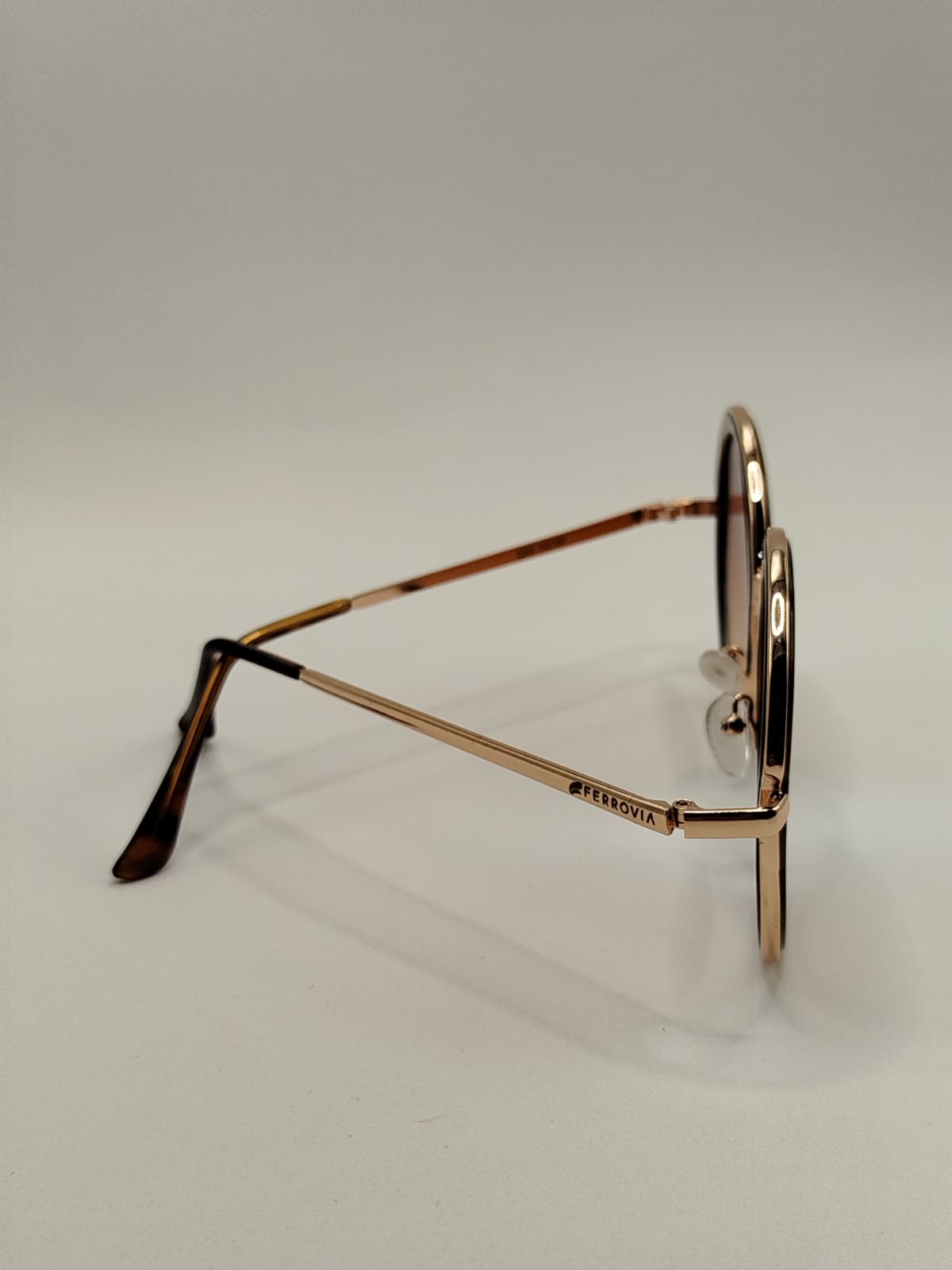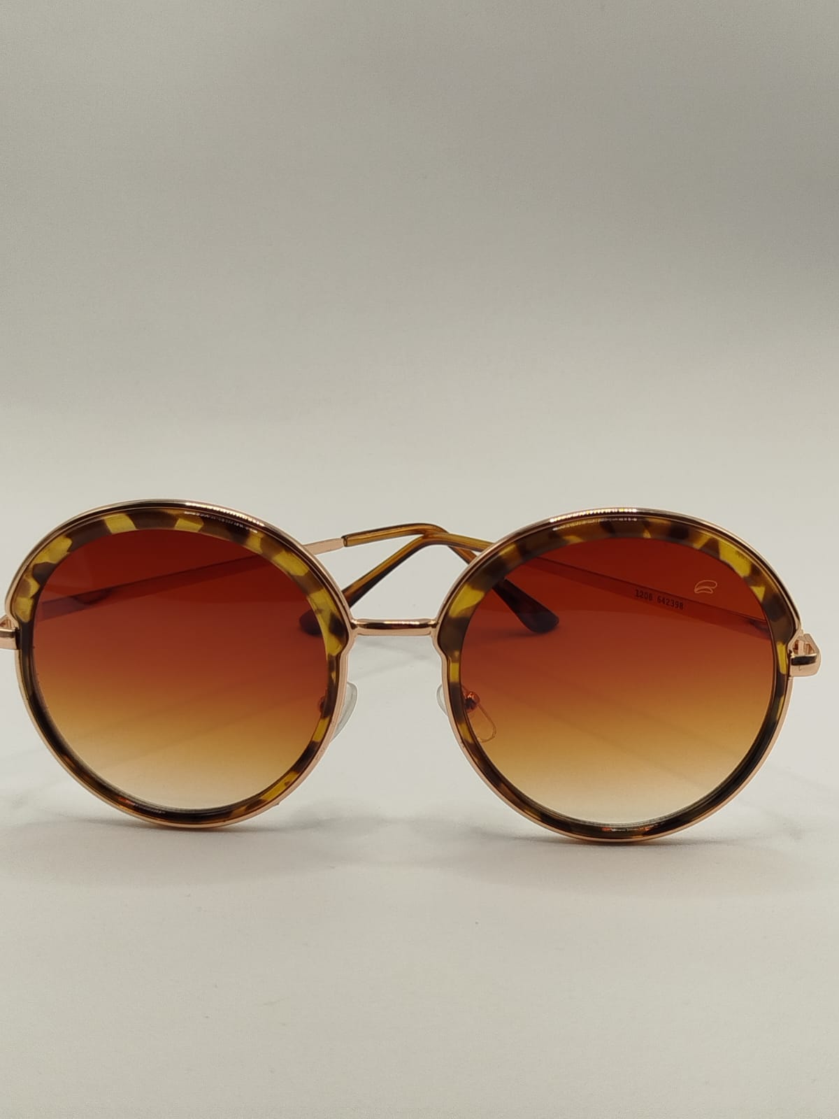 Uma armação oval em metal que fornece leveza, resistência e um acabamento refinado. O destaque fica por conta das inserções em acetato com padrão rajado — geralmente aplicadas nas bordas frontais ou nas hastes, adicionando textura, contraste e um ar sofisticado ao design.