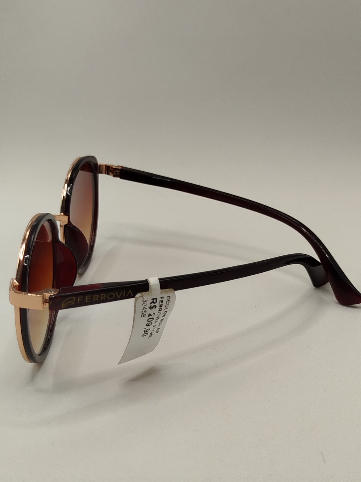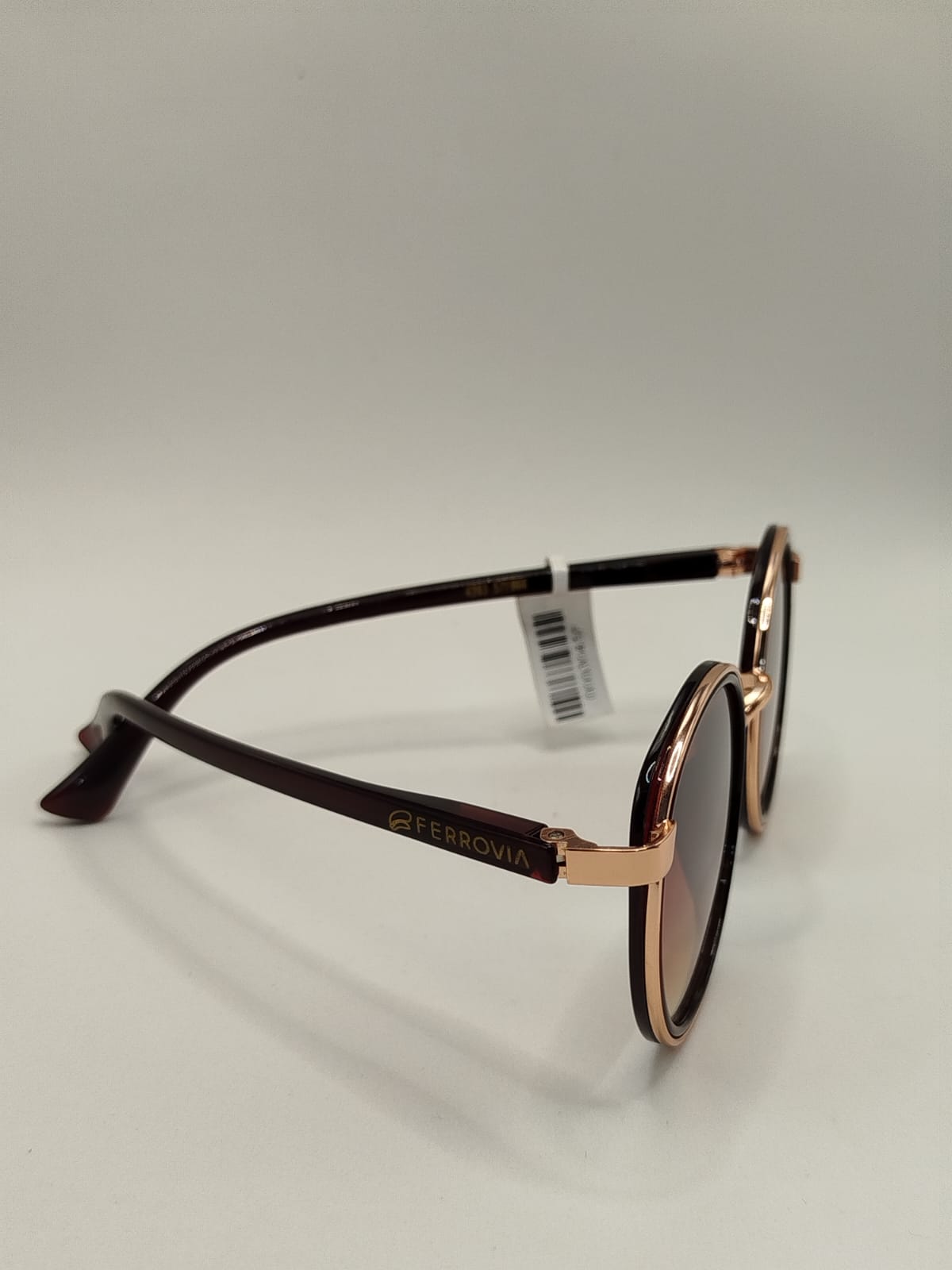 Óculos Solar Ferrovia Óculos de Sol Ferrovia – Armação Metal Oval Prateada com Lentes Marrom Combine elegância clássica com leveza e proteção. O Óculos de Sol Ferrovia em design oval com armação de metal prateado e lentes na tonalidade marrom oferece estilo refinado, conforto e máxima proteção contra os raios solares.