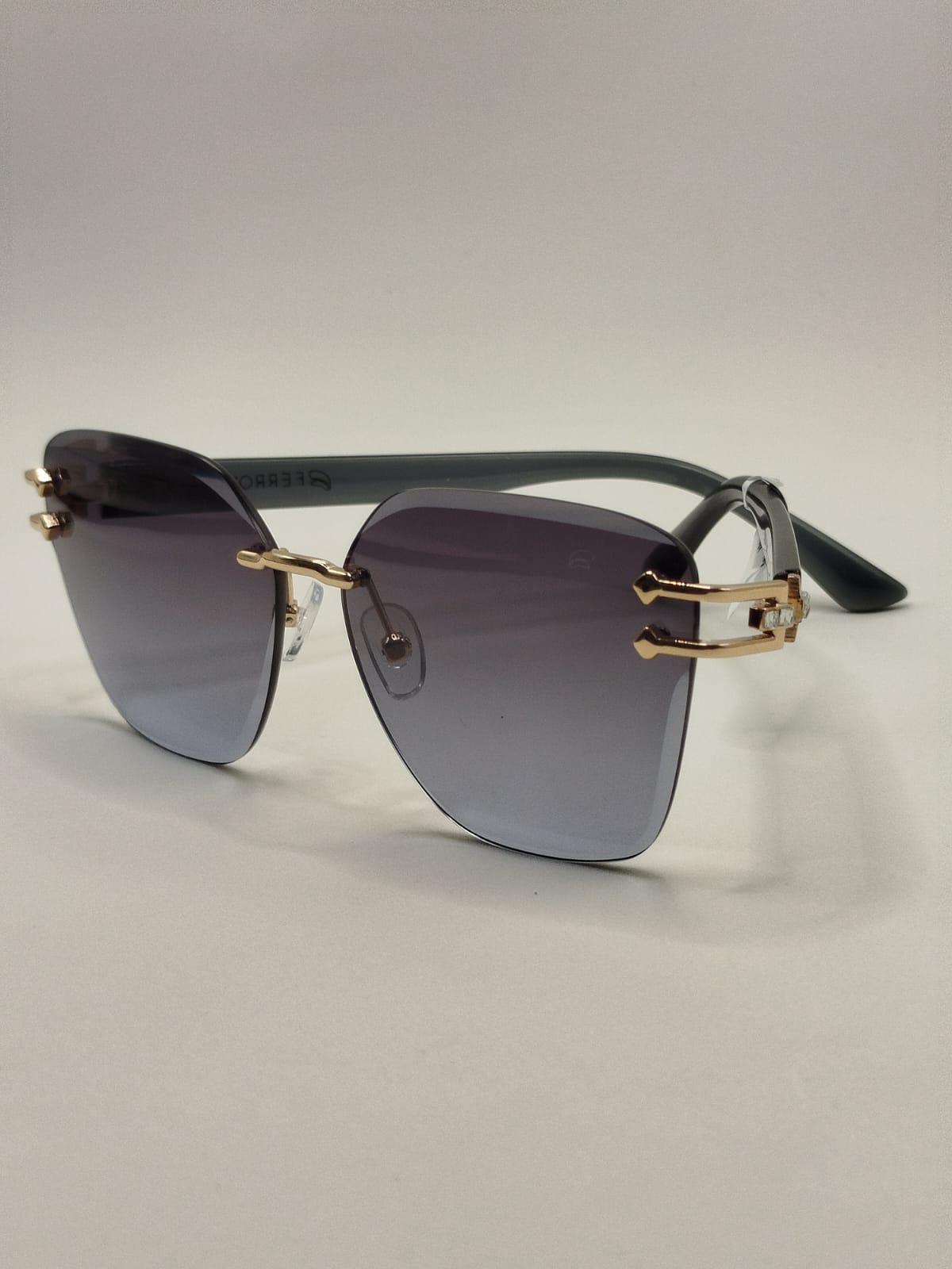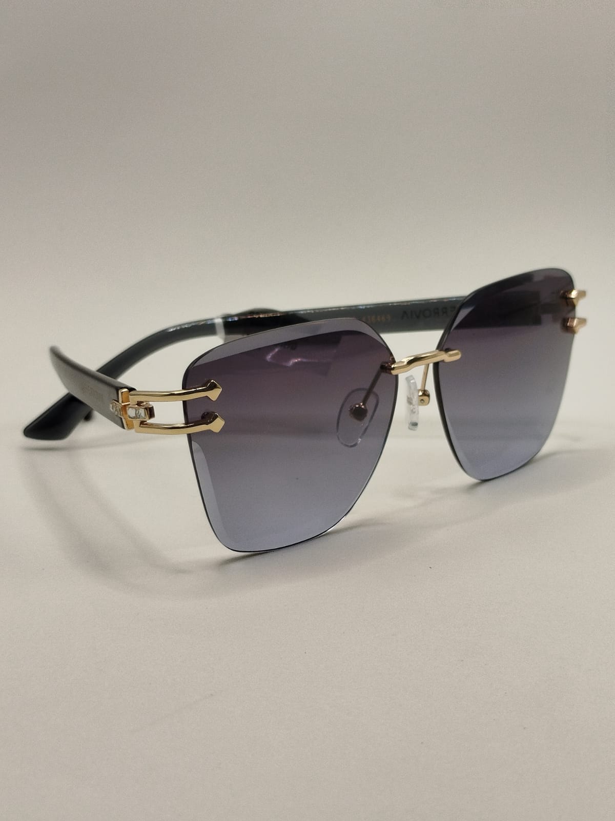 Design sofisticado e leve com estrutura parafusada dourada e detalhes elegantes em arte preta. Um modelo moderno que une estilo refinado, conforto e proteção para os dias de sol.