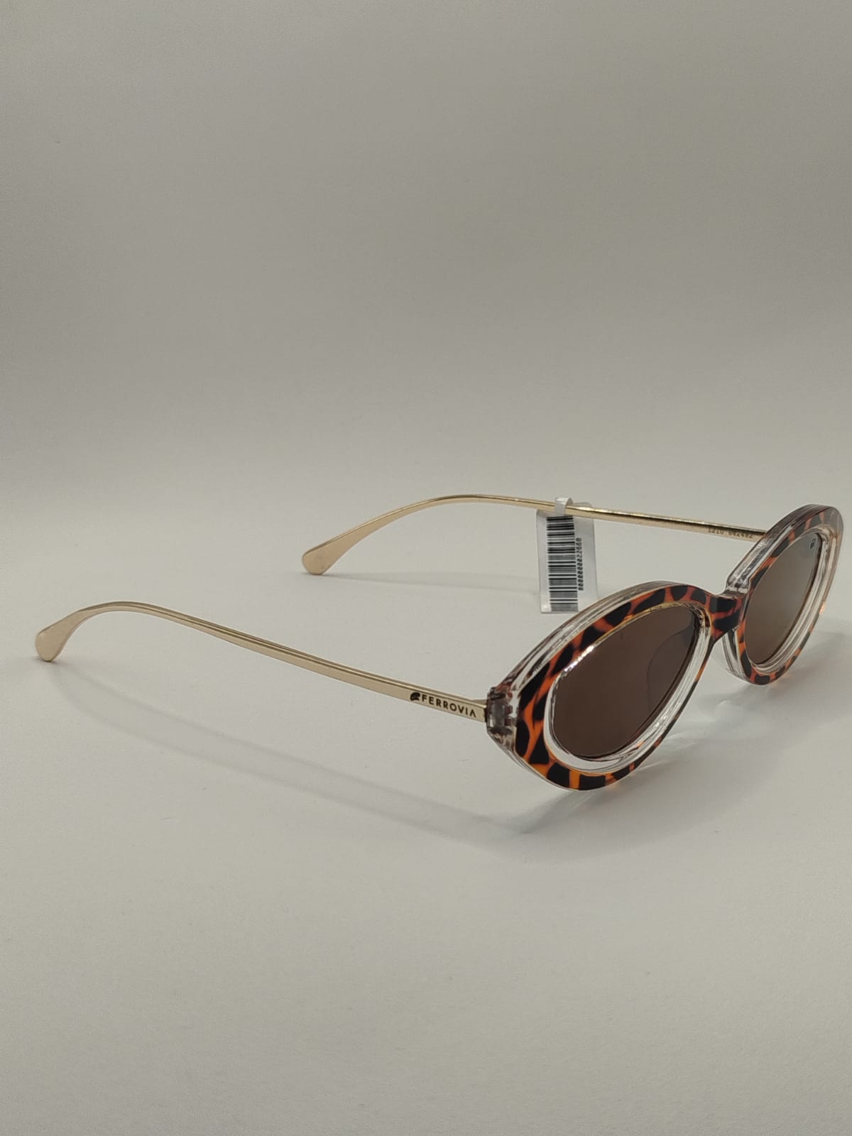 Um verdadeiro ícone de estilo e sofisticação. Este óculos solar da Ferrovia traz o charme do formato gatinho requadrado, com estrutura em metal dourado e acabamento em acetato com estampa de onça, que adiciona um toque de ousadia e elegância. A arte fina nas hastes valoriza ainda mais o design, tornando a peça única e cheia de personalidade. Ideal para quem busca um acessório fashion, com presença marcante e proteção solar de qualidade.